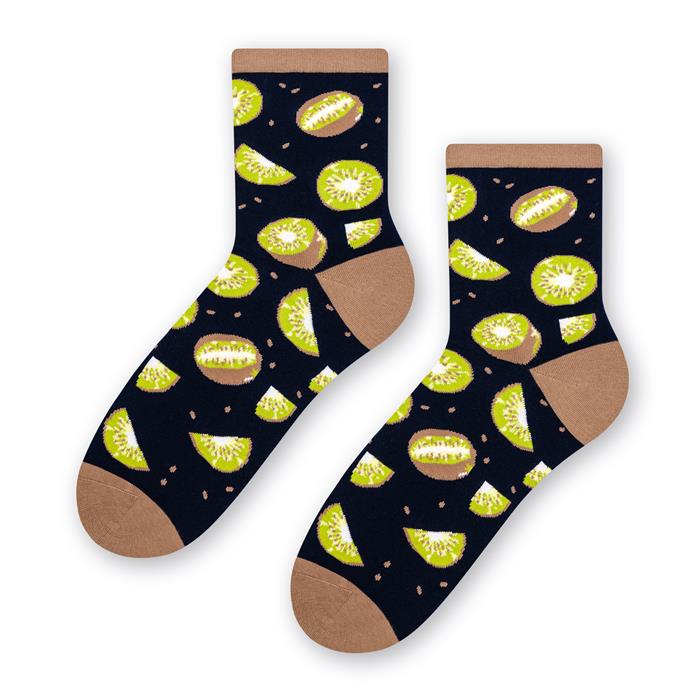 Gdy znudziły Ci się gładkie skarpetki i szukasz nowych inspiracji. Polecamy skarpetki damskie firmy Steven 159/070 granatowe Kiwi